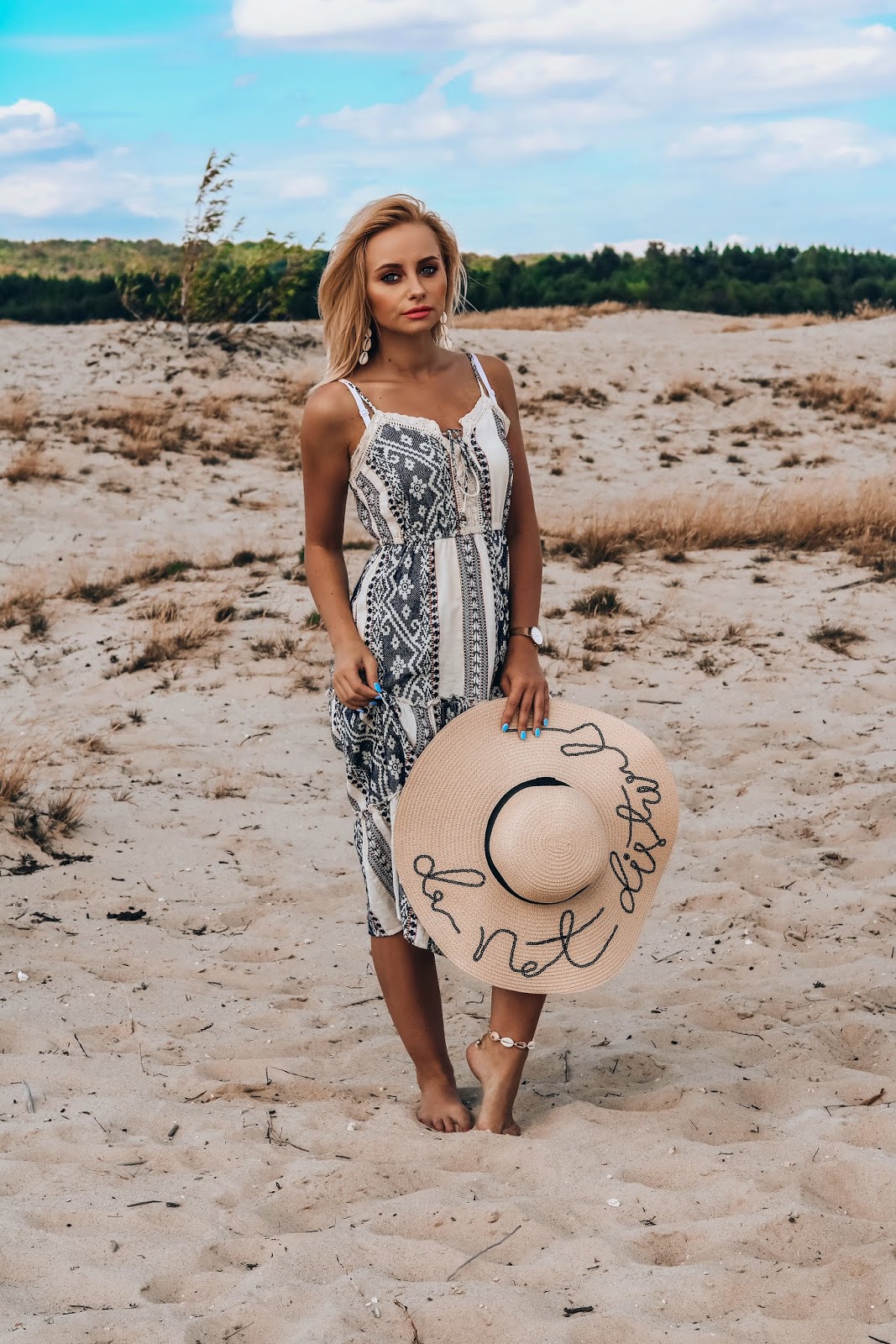 Ten wrześniowy post z iście letnią stylizacją w otoczeniu Pustyni Błędowskiej jest swego rodzaju zakończeniem, pożegnaniem się z okresem wiosenno-letnim na moim blogu. Choć przewijać się będą jeszcze stylizacje z sukienkami, botkami, tak już myślę, że kapelusze, zwiewne sukienki odchodzą na kilka miesięcy w zapomnienie i przywitam się z Wami już jesiennymi stylizacjami. Oby tylko wrzesień i październik był piękny, słoneczny, ciepły, złoty! ;)